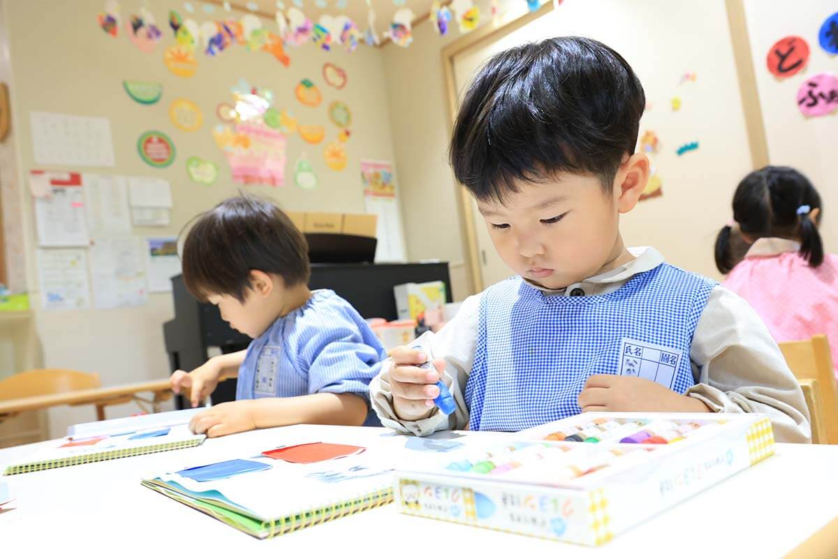 その後、各クラスで粘土遊びや絵画製作、文字のおけいこ等を行います。特別教室もあります。